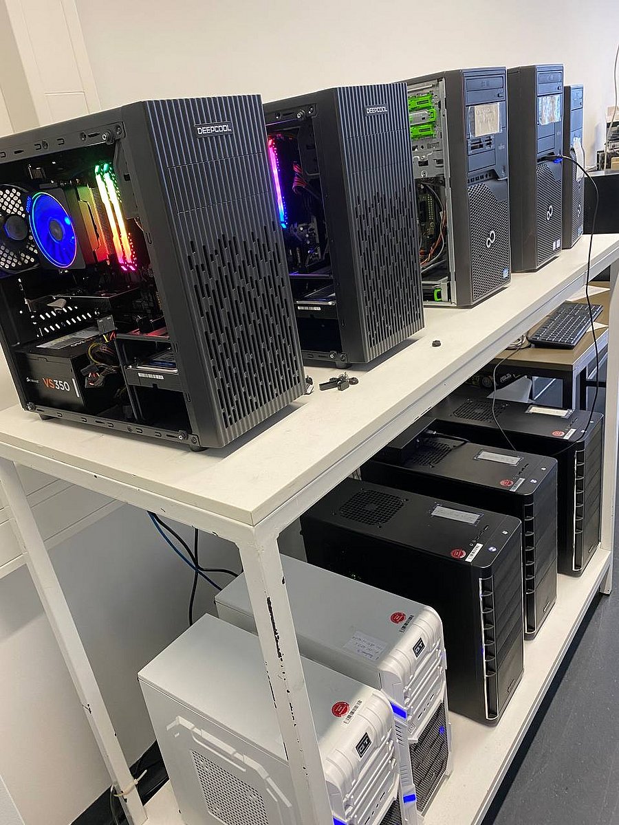 Quantenchemische Rechnungen (DFT und ab initio) unterstützen die Syntheseplanung und helfen beim Verständnis der Ergebnisse. So können zum Beispiel die Strukturen unbekannter Verbindungen, Übergangszustände, Reaktionsenthalpien und IR und NMR-Spektren berechnet werden. Im Arbeitskreis steht dafür ein Linux-Cluster mit 24 CPUs zur Verfügung.